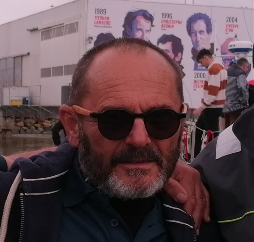 Remise du pavillon du Cap Horn à l'Esprit d'Equipe (Lionel Régnier en photo, Pierre-Yves Cavan et tout l'équipage) par VDH. Mot introductif de Yannick Moreau.