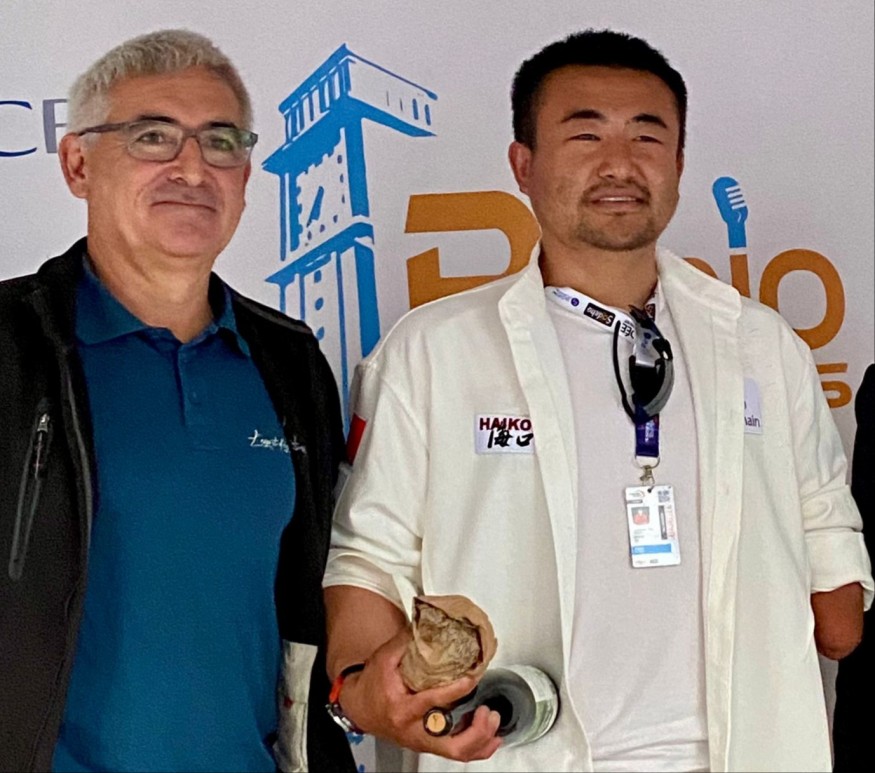 C'est la première fois qu'un skipper chinois tente le Vendée Globe et sur sa manche, un dragon, symbole de force et de tranquilité. Pierre-Yves Cavan l'avait déjà rencontré et c'est donc à lui que revient le privilège de l'interviewer.