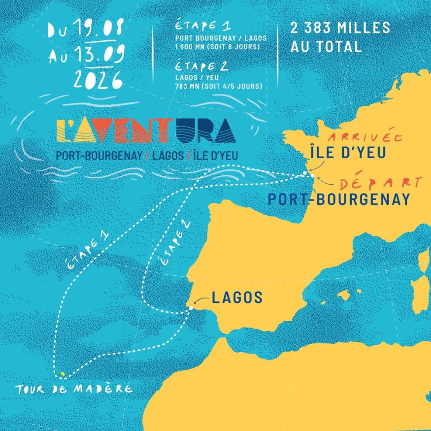 Estelle Graveleau a souhaité pour l’occasion proposer aux skippers un parcours différent de ceux qu’ils ont l’habitude de connaître sur le circuit, avec un aller-retour entre la Vendée et le Portugal. D’où ce nom d’Aventura, qui invite au voyage et à la découverte.